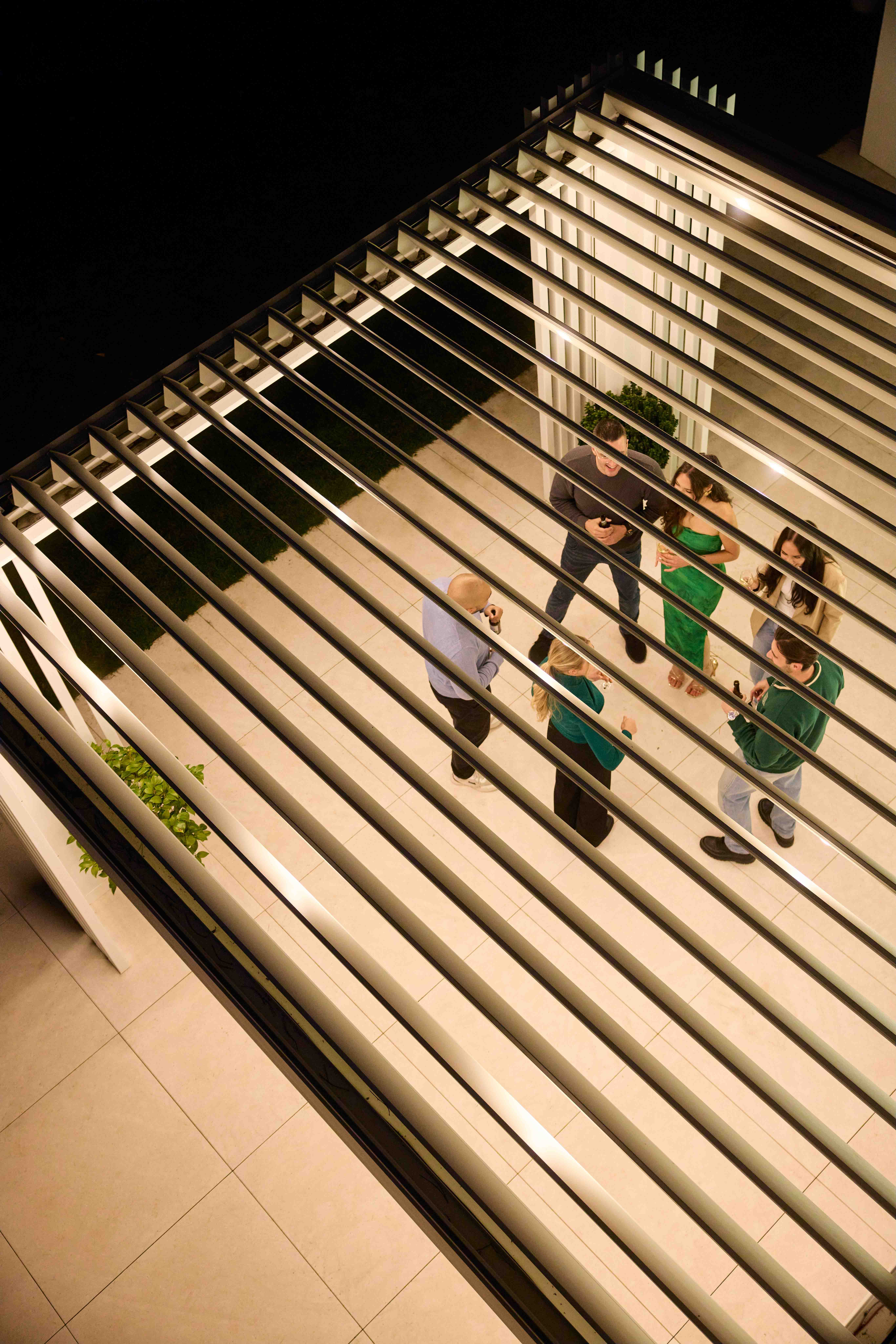 Für dieses exklusive Kundenprojekt wurde die bioklimatische Pergola Rubina 601 der SIGNATURE Collection in Weiß mit maßgefertigten Designstützen installiert. Die hochwertige Aluminiumkonstruktion überzeugt durch präzise auf Gehrung gesägte Traufen und ein elegantes, modernes Design. Dank der vollautomatisch verstellbaren Lamellen kann das Sonnenlicht individuell reguliert werden, während das unsichtbare Wasserablaufsystem für eine zuverlässige 100 %ige Regendichtigkeit sorgt. Das Rubina ergänzt perfekt die moderne Architektur und bietet einen stilvollen und funktionalen Outdoor-Bereich, der höchsten Komfort garantiert.