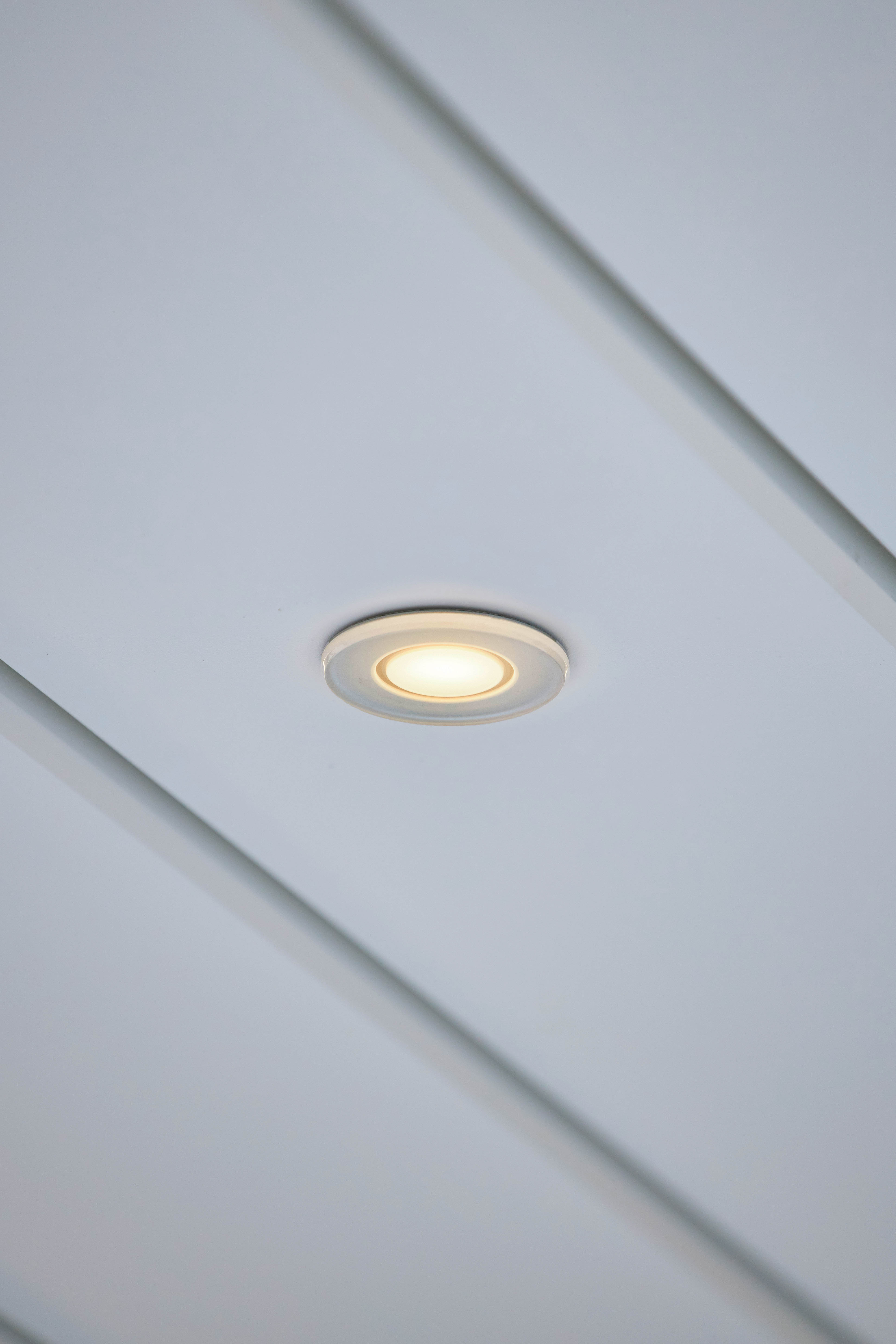 - Beleuchtung: Integrierte LED-Stripes (3000 K Warmweiß) & LED-Spots
