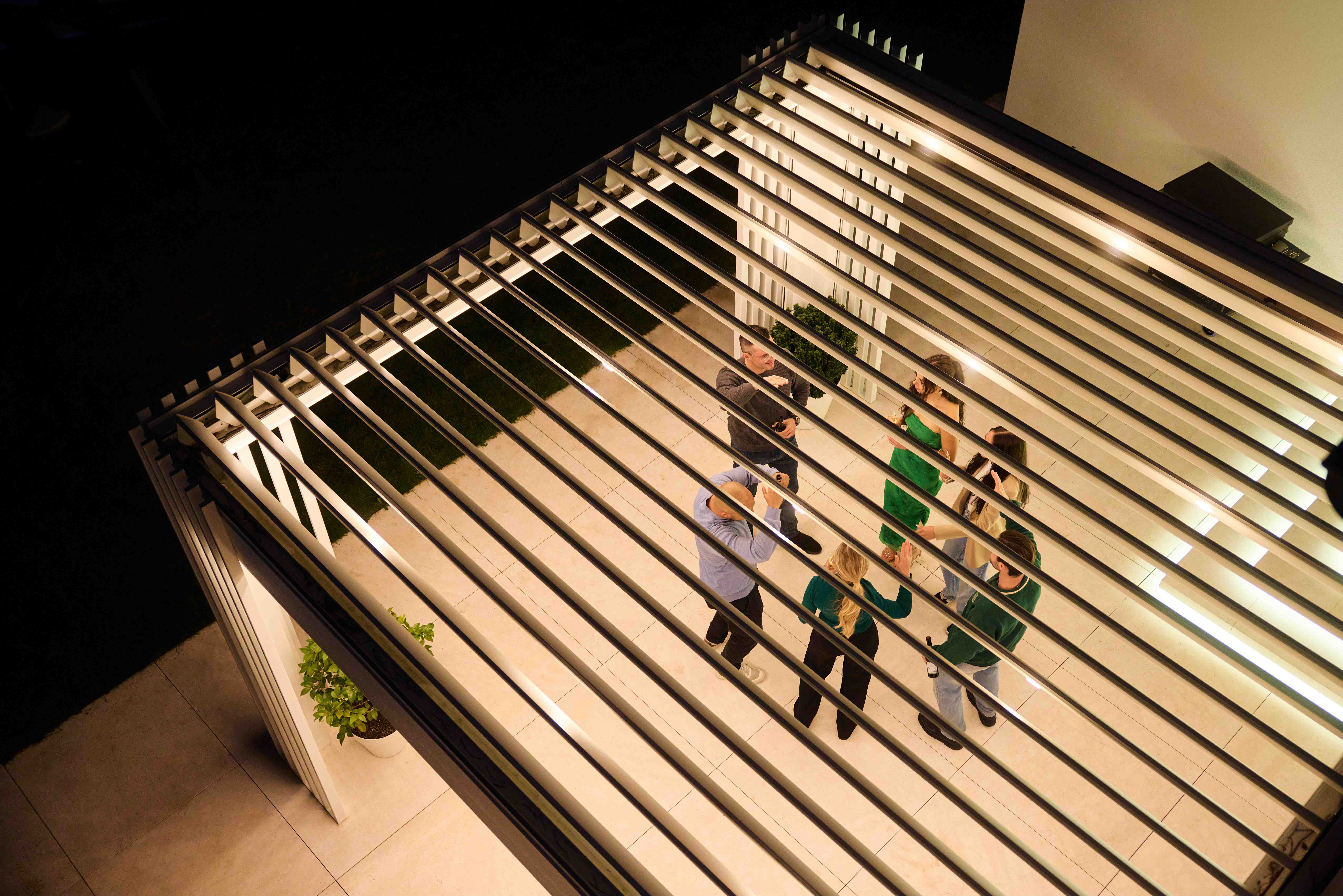 Dank der 35 verfügbaren RAL-Farben passt sich die Pergola ideal an individuelle Designwünsche an. In diesem Projekt hat sich der Kunde für die Farbe RAL 9016 entschieden – ein reines, strahlendes Weiß, das für eine zeitlose Eleganz und moderne Ästhetik sorgt.Mit der INODEQ® TriColor Option können Kunden die Konstruktion, Lamellen und Designstützen individuell gestalten und verschiedene Farben kombinieren.