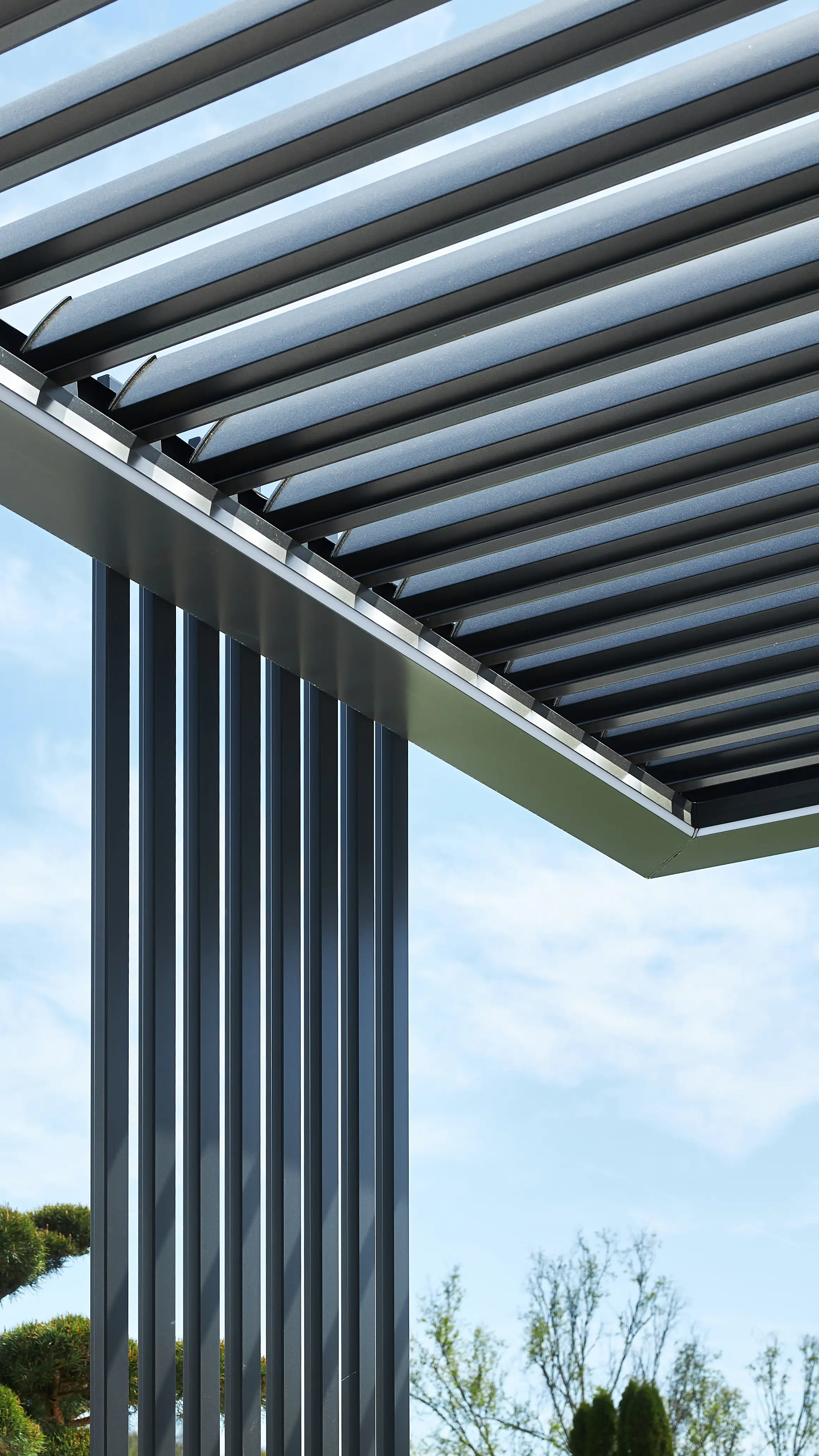 Dunkel, elegant, und voller Ausdruckskraft – dieses Lamellendach mit Designstützen fügt sich nahtlos in die moderne Gartengestaltung unseres Kunden ein. Ein echtes Statement für Ästhetik und Funktionalität. Erfahren Sie, wie zufrieden unser Kunde mit diesem einzigartigen Projekt ist!
