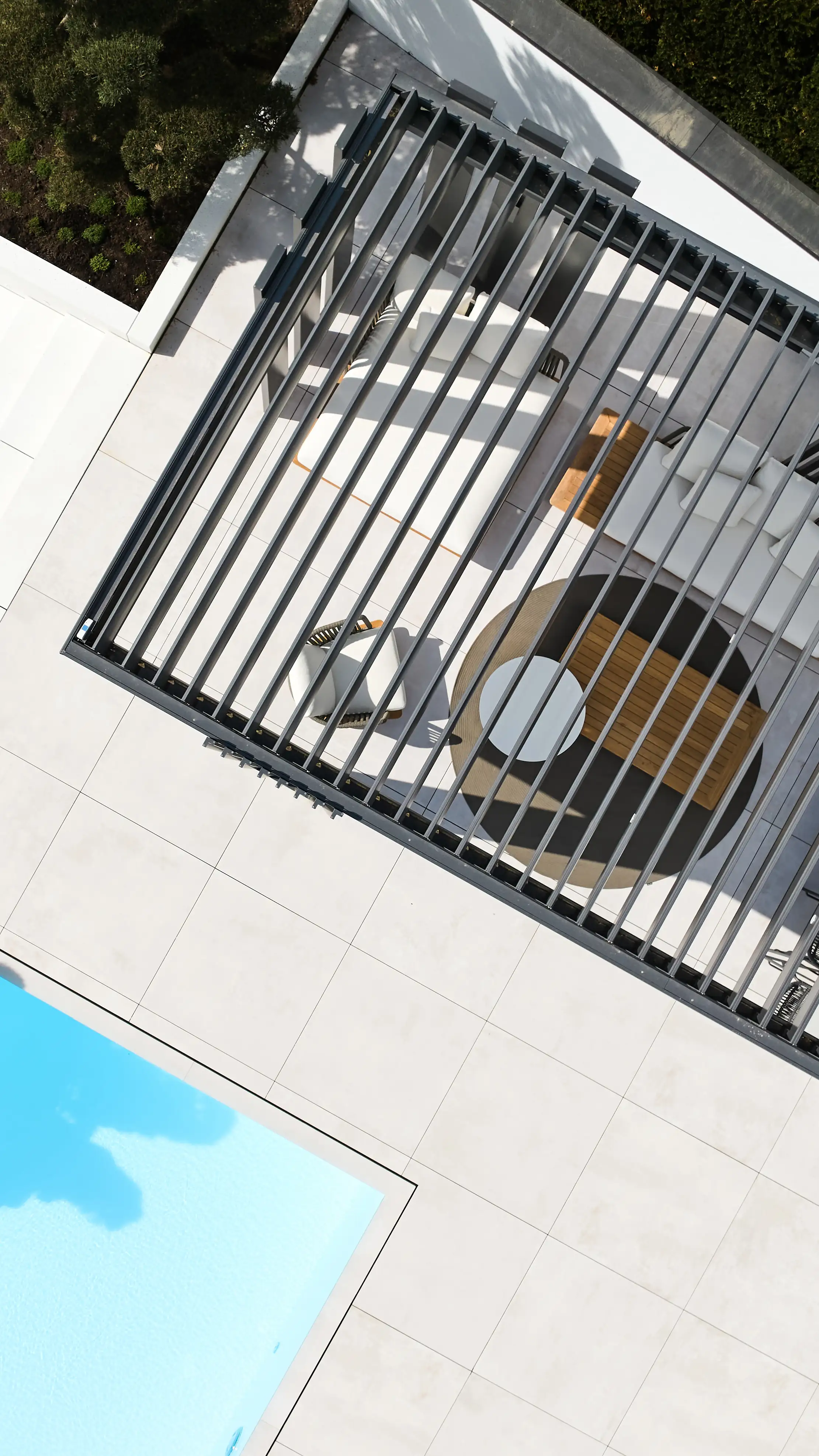 Das Lamellendach ist weit mehr als nur eine Überdachung. Es fügt sich nahtlos in die moderne Architektur des Hauses ein und setzt dabei stilvolle Akzente, die die zeitlose Eleganz der Villa unterstreichen. Die hochwertigen Materialien gewährleisten Stabilität und Langlebigkeit, während das schlichte, edle Design den Outdoor-Bereich optisch erweitert und ihm eine luxuriöse Note verleiht. INODEQ hat der Familie geholfen, ihre Vision in die Realität umzusetzen – ein stilvoller Rückzugsort im Freien, der Ästhetik und Komfort miteinander verbindet.