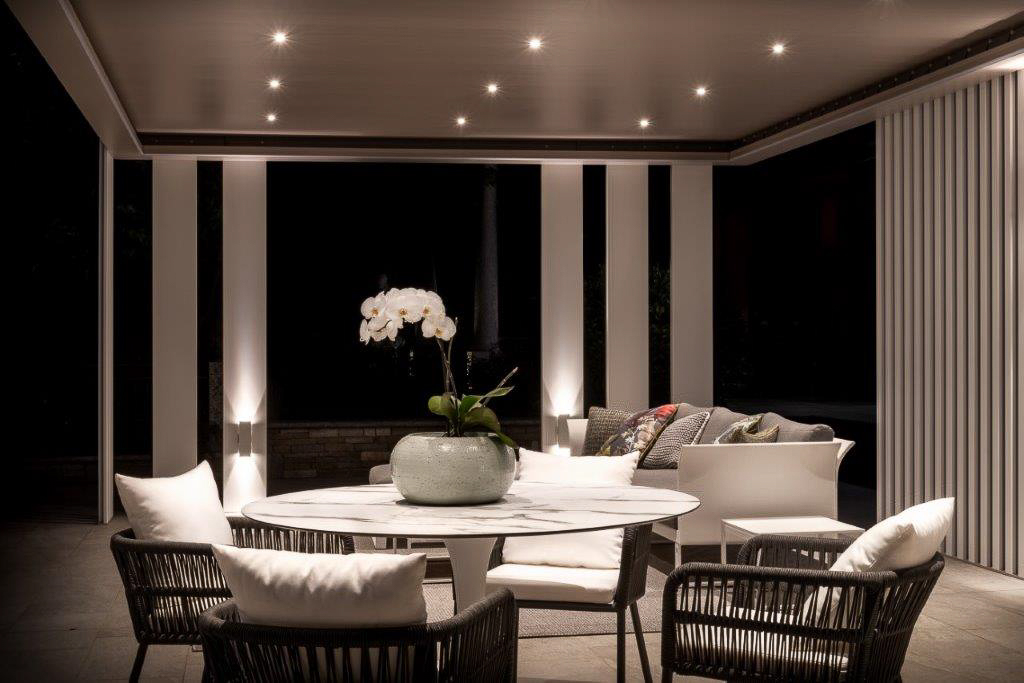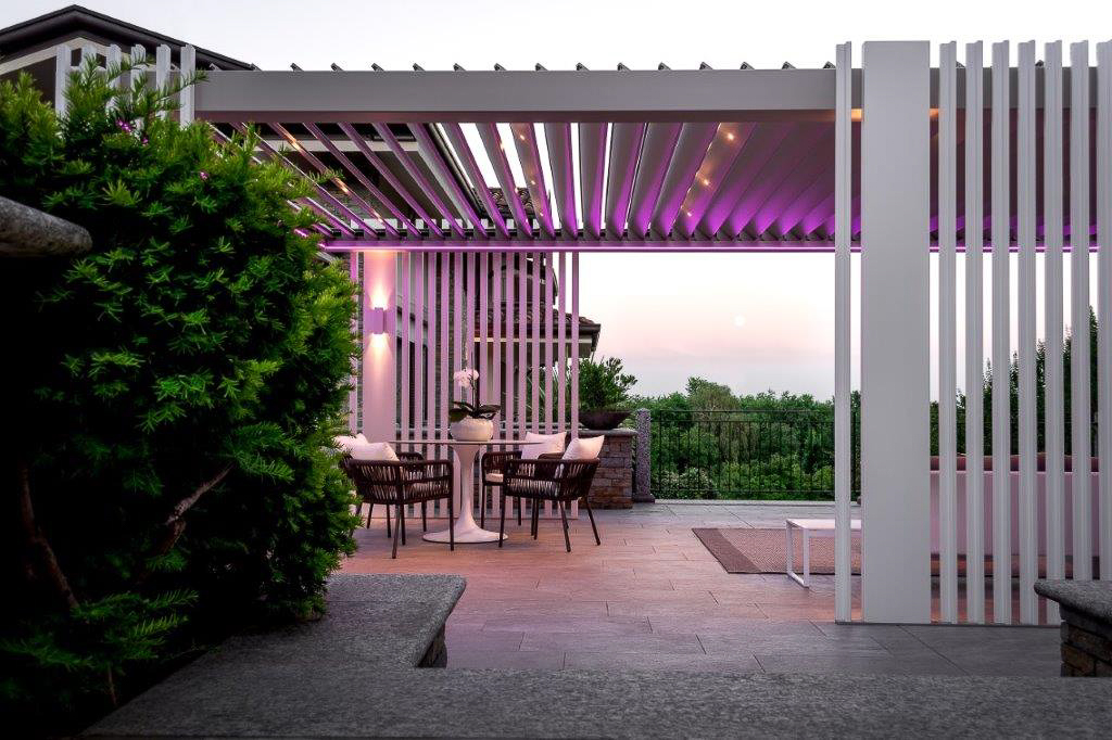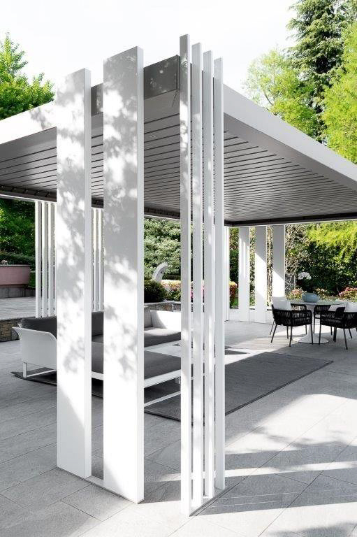 After the initial drafts, it quickly became clear that an individual solution had to be found that would be perfectly adapted to local conditions in Milan. The chosen slatted roof in bright white with elegant design supports was the ideal answer to these requirements. The bright roof harmonizes wonderfully with the modern aesthetics of the house and creates a friendly, inviting atmosphere. The clear, modern lines of the roof fit seamlessly into the existing architecture, while the design pillars act as an architectural highlight and provide stability. The combination creates an open, light-filled atmosphere that makes the garden a natural extension of the living area and at the same time provides the desired protection.